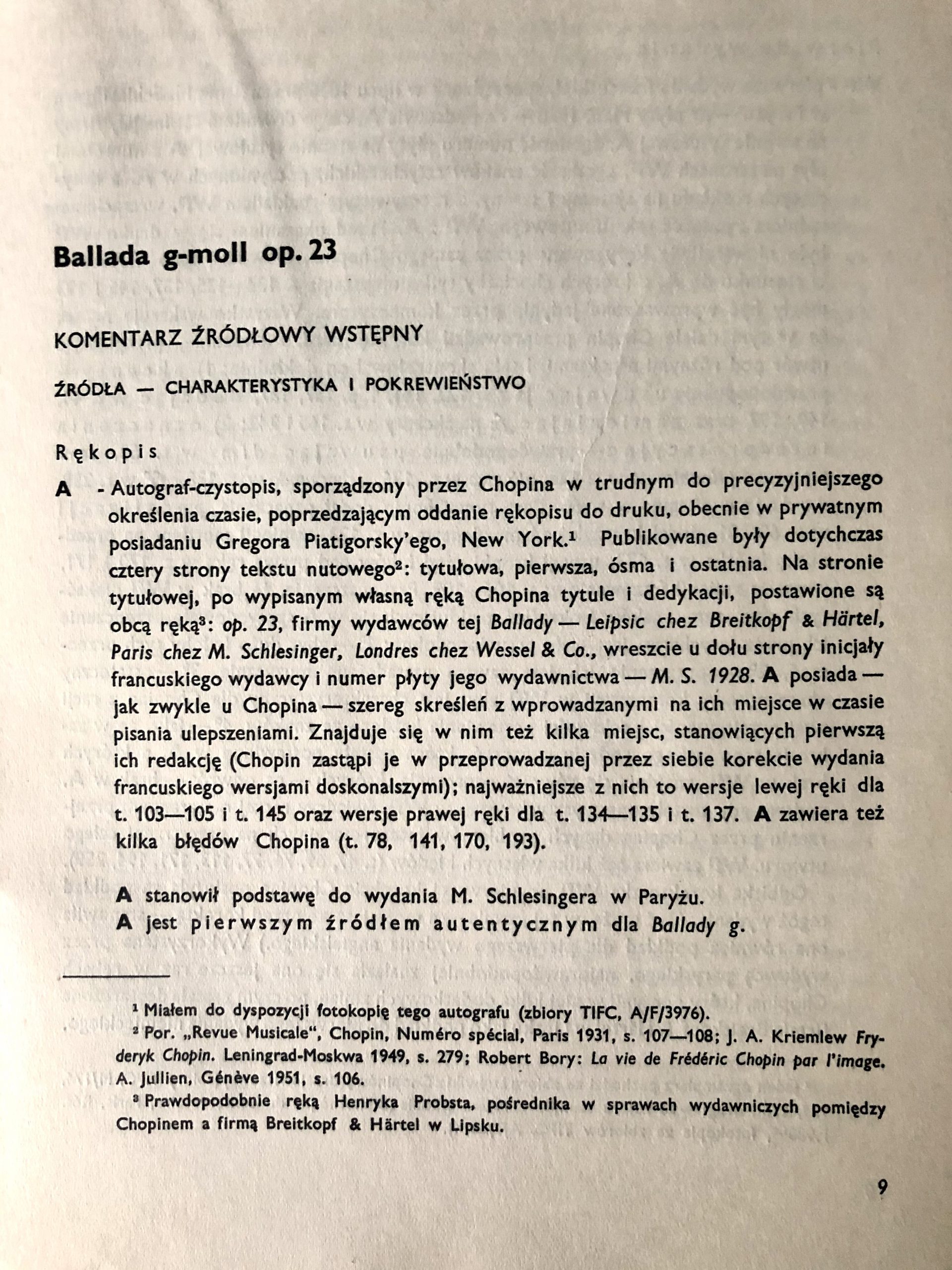 もう黄ばんでしまっている1970年に出版されたバラードの原資料譜についての詳しい解説書。