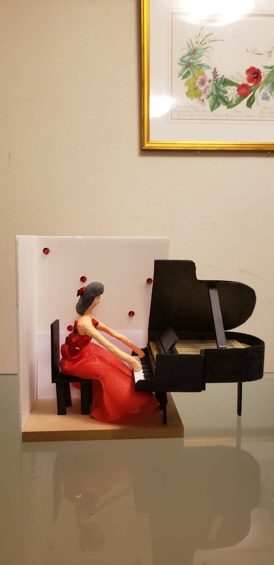 学校の図工の時間に作った『ピアノを弾く女の子』。萌々子ちゃん自身かな?