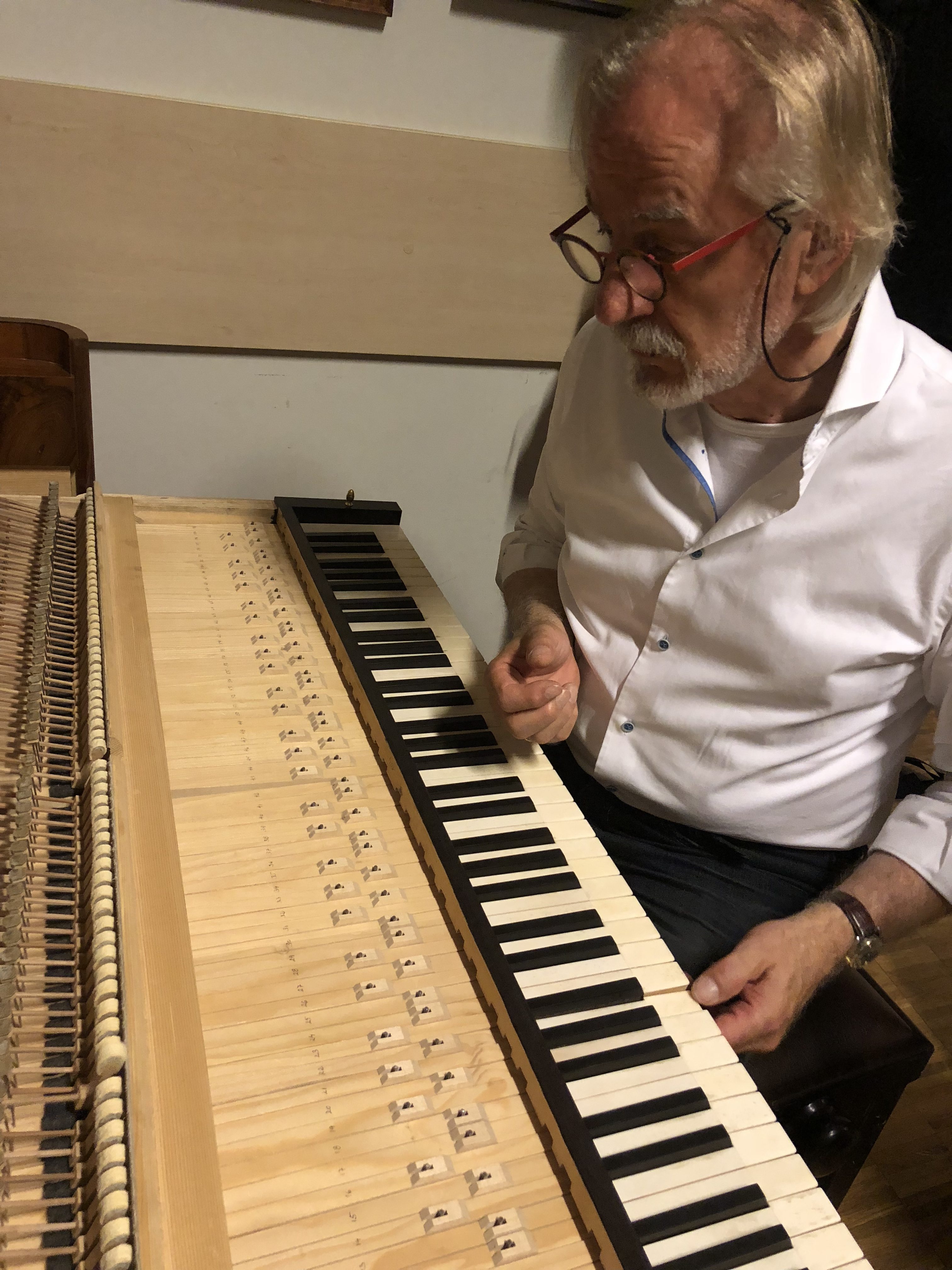 現代のフルコンなどとは比べものにならないほど繊細な楽器を次々にコンテスタントたちが弾いていくわけですから、演奏ごとに多少の調整をして整えます。
